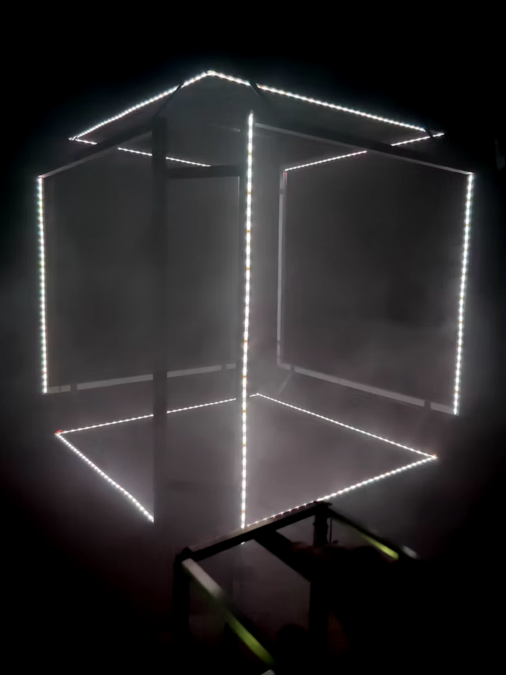 Instalação luminosa utilizando vários projetores. Criar conteúdo para vários projetores que pode ser apreciado olhando diretamente para o feixe de luz é um alfabeto em si mesmo que gera uma percepção holográfica e tridimensional da luz. Estas traduções simples ilustram a passagem dos desenhos 2D no ecrã para o que o público percebe com o uso da luz projetada. O uso destas diretrizes distribuídas em seis saídas e modalidades diferentes como única fonte de luz criou uma arquitetura de luz dinâmica totalmente imersiva. A luz exibida e projetada pelo projetor de vídeo não para de se reproduzir até atingir as paredes do espaço do teatro.