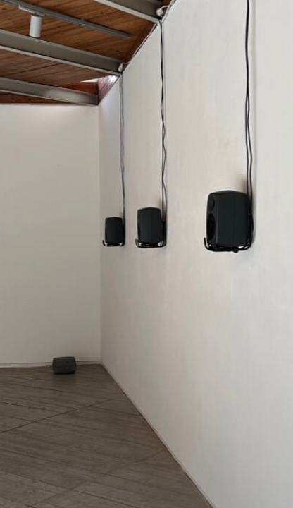 Um bloco de betão é lentamente arrastado pelo espaço da galeria, revelando de forma audível as texturas, imperfeições, densidades e microconfigurações do piso de betão. O som dessa fricção é amplificado, transformado e difundido por alto-falantes posicionados em diálogo com uma linha de força que estabelece uma relação específica com a sala. Na resistência oferecida pelo solo ao movimento do bloco, é a fricção que se torna audível. Mas o solo não é meramente um instrumento: a fricção é quase uma inscrição, quase uma gravação e, simultaneamente, uma (re)produção.